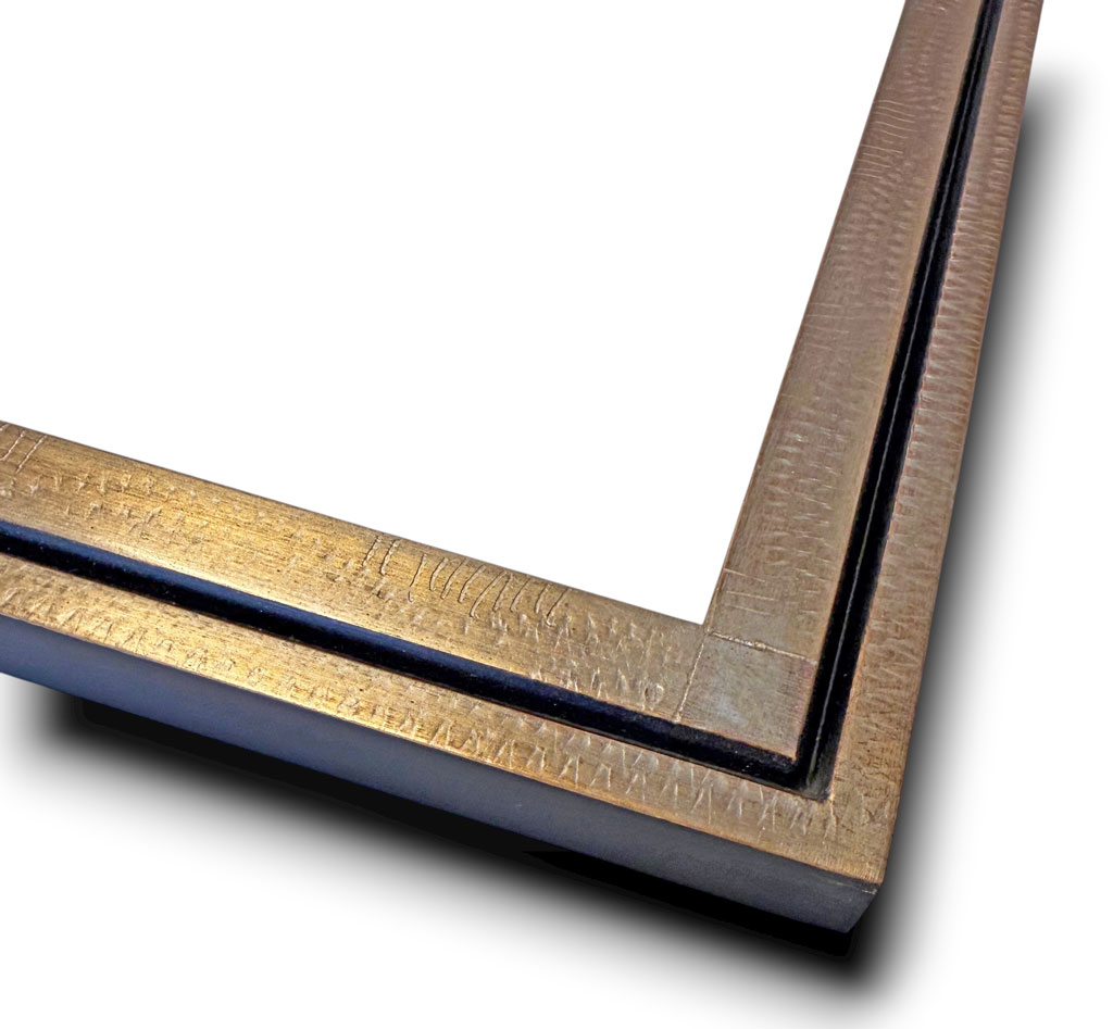 Kupfer vergoldung oder Feingold , Weissgold oder echtes Silber, Holzshnitzerei, Eichenrahmen, klassische Rahmen, aber auch mit Hilfe moderner Materiallen wird in unsere Kollektion Alurahmen mit Plexiglas und Holz vermischt.